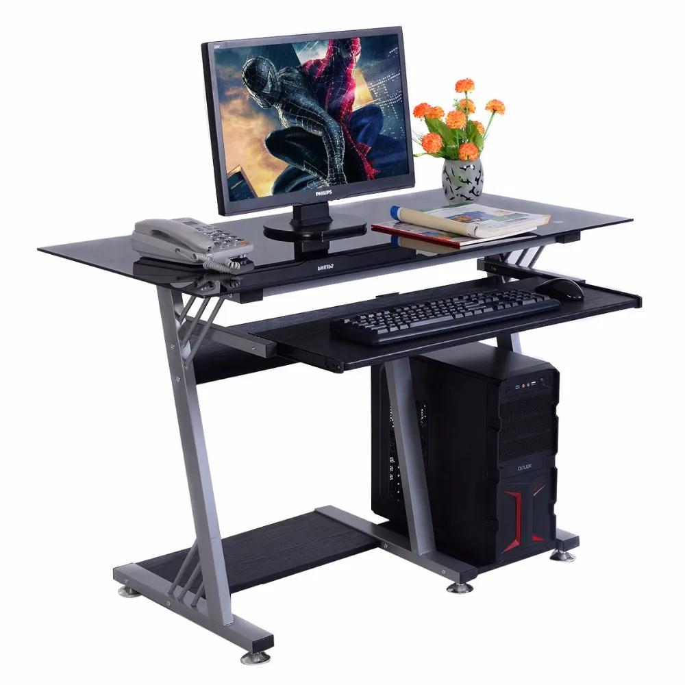 Office Glass Top Computer Desk Modern Pc Joum Usa