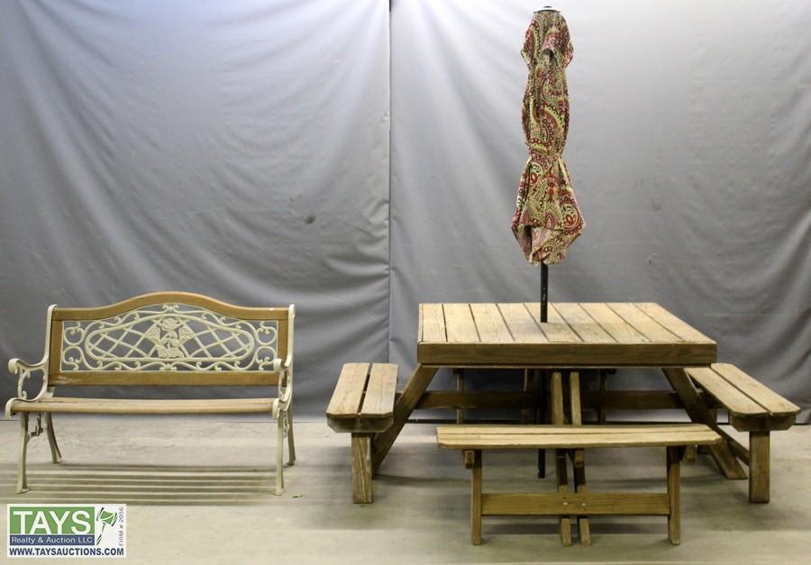 Picnic Table Set One Table With Two Benches And One Umbrella