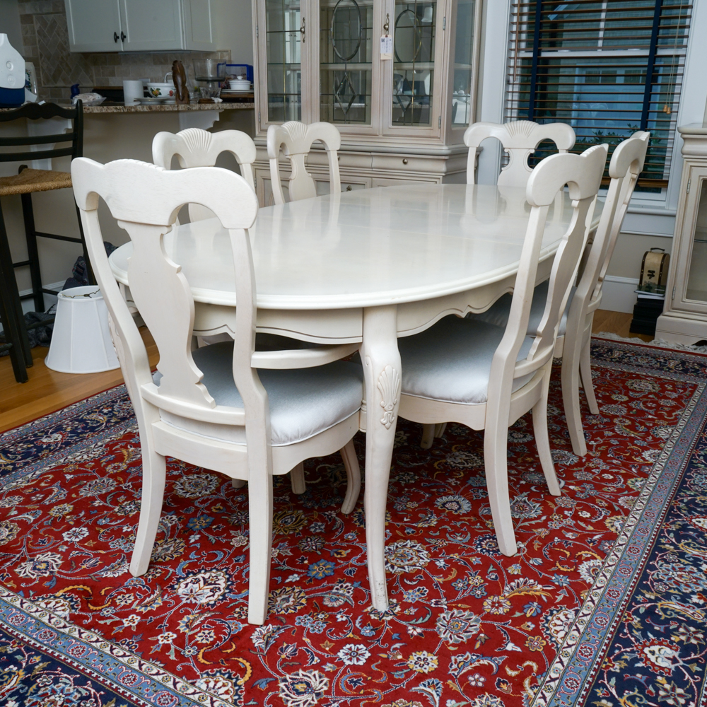 Cream Painted Dining Table With Six Painted Chairs Ebth