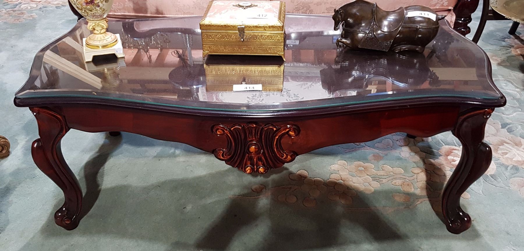 Glass Top Mahogany Coffee Table Dangerfield Auctions Llc