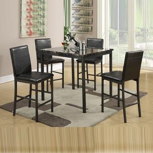 5pc Black White Faux Marble Top Counter Height Dining Set Lowest