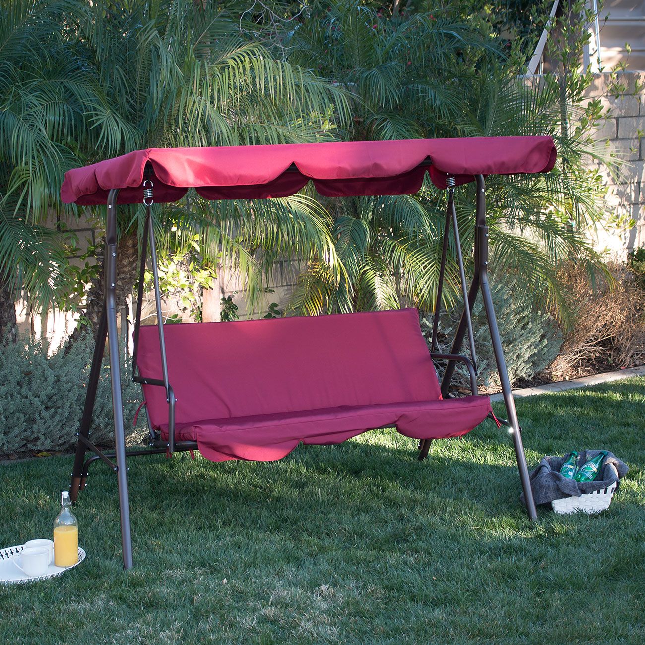 Sunnydaze Decor 3 Person Patio Swing With Canopy And Maroon