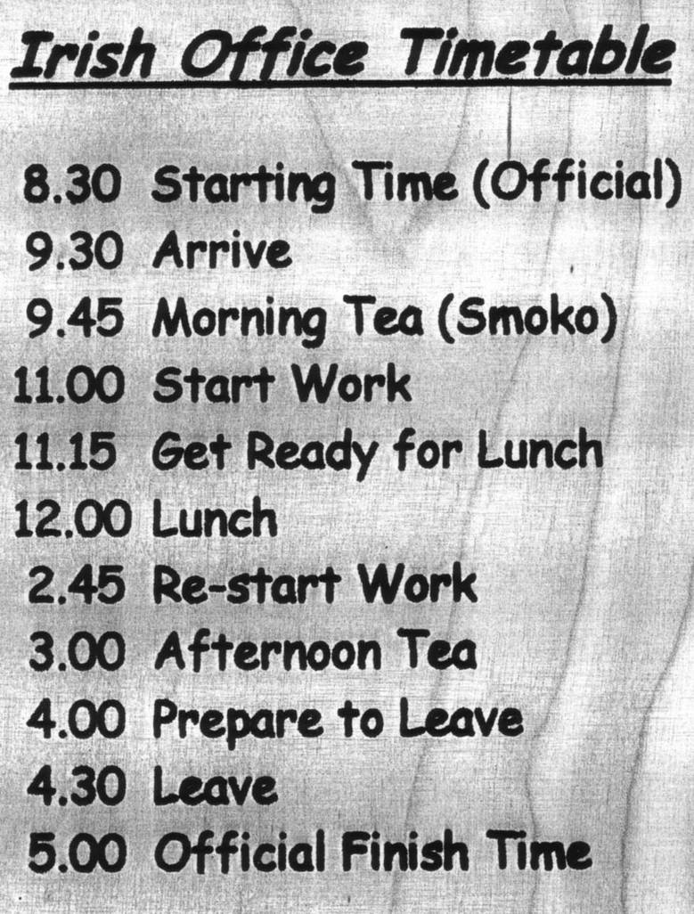 Office Timetable 900 Starting Time 930 Arrive At Work 945 Coffee