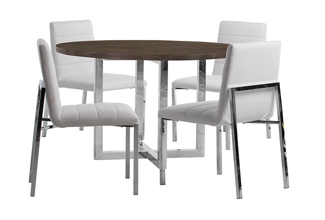 The Besteneer Dark Gray 5 Pc Round Drm Table 4 Uph Side Chairs