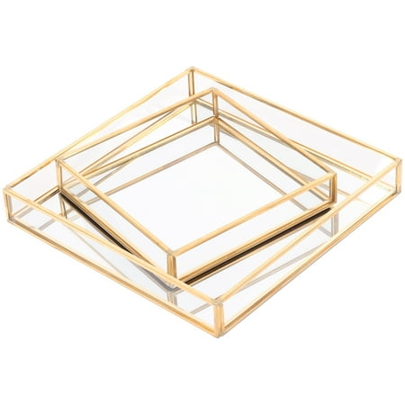 Koyal Wholesale Gold Glass Mirror Square Trays Vanity Set Of 2