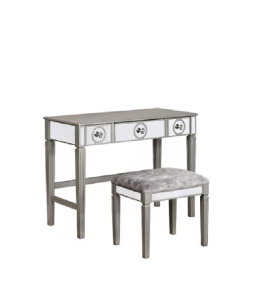 Vanity Table Set Desk Stool Makeup Bedroom Silver Glam Mirrored