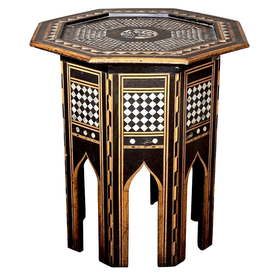 Vintage Moroccan Style Table With Mother Of Pearl Inlay Ebth