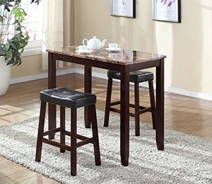 3 Piece Counter Height Breakfast Table Faux Marble Top With 2 Dark