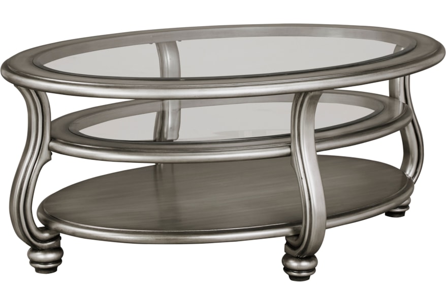Hammary Mallory Oval Glass Top Cocktail Table Satin Nickel