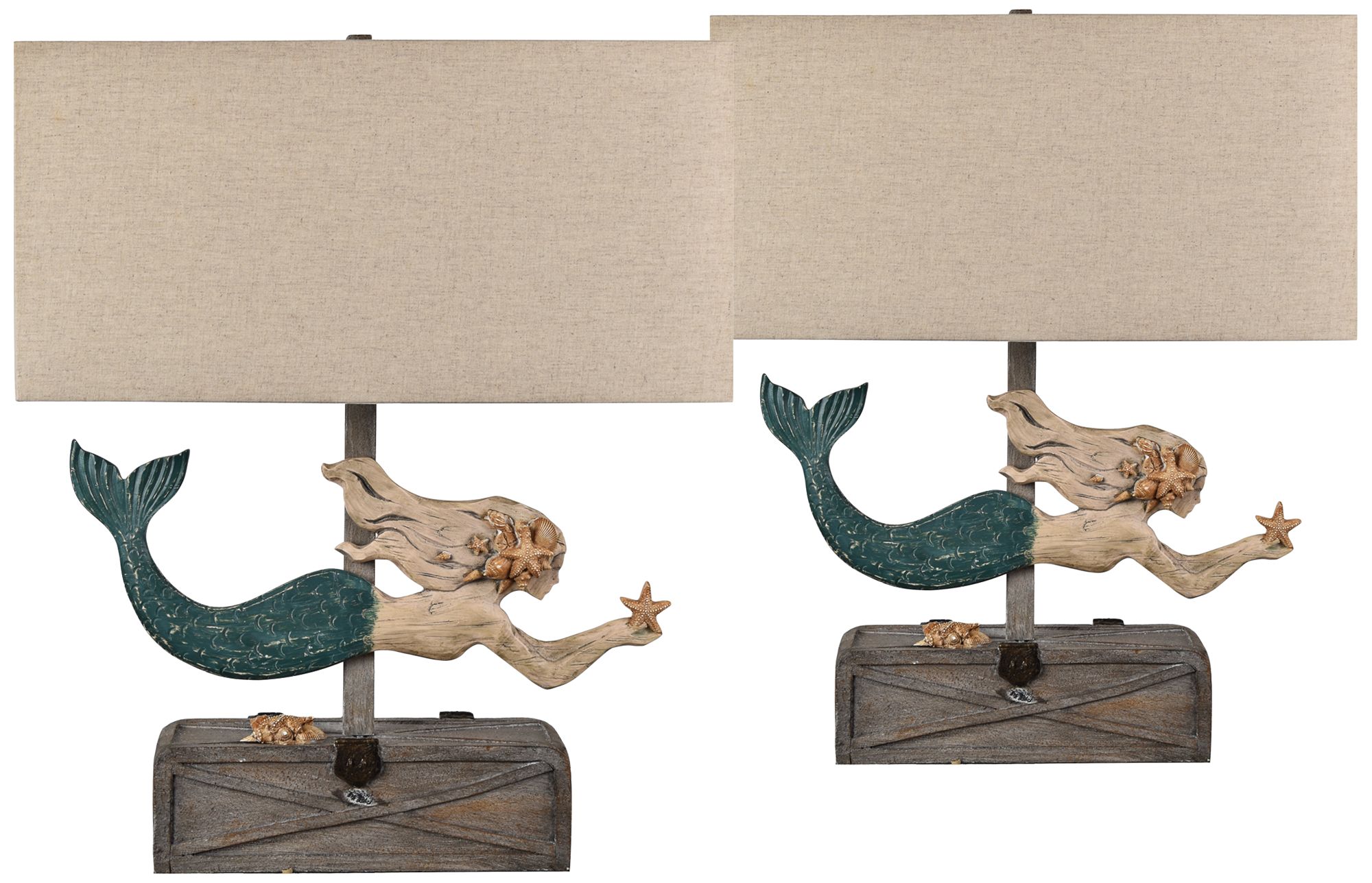 Mermaid Treasure Nautical Blue And Wood Table Lamps Set Of 2