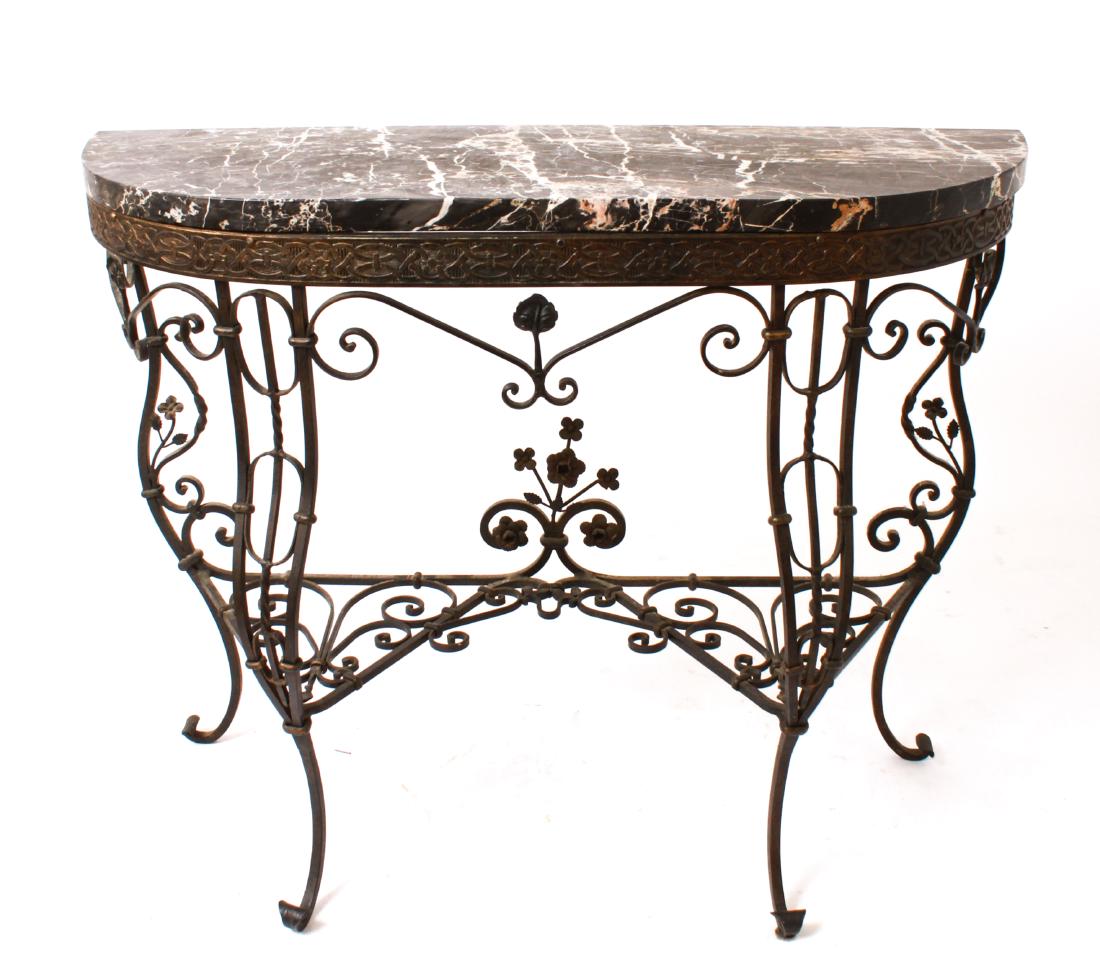 Art Deco Marble Top Wrought Metal Console Table Jul 14 2019