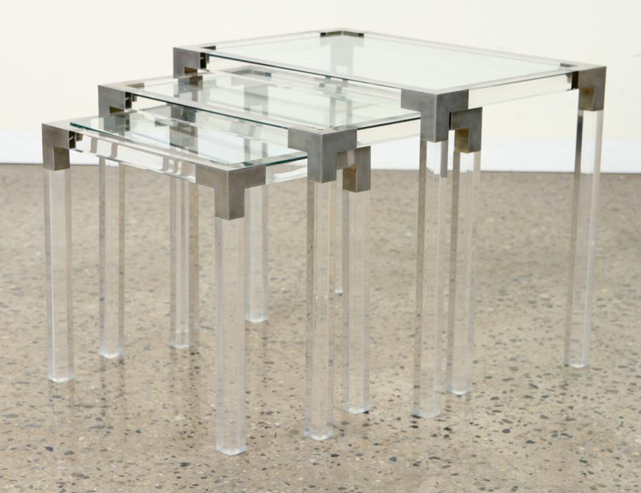 Nest Of 3 Lucite Glass Tables Metal Mounts C 1970 Jan 30 2020