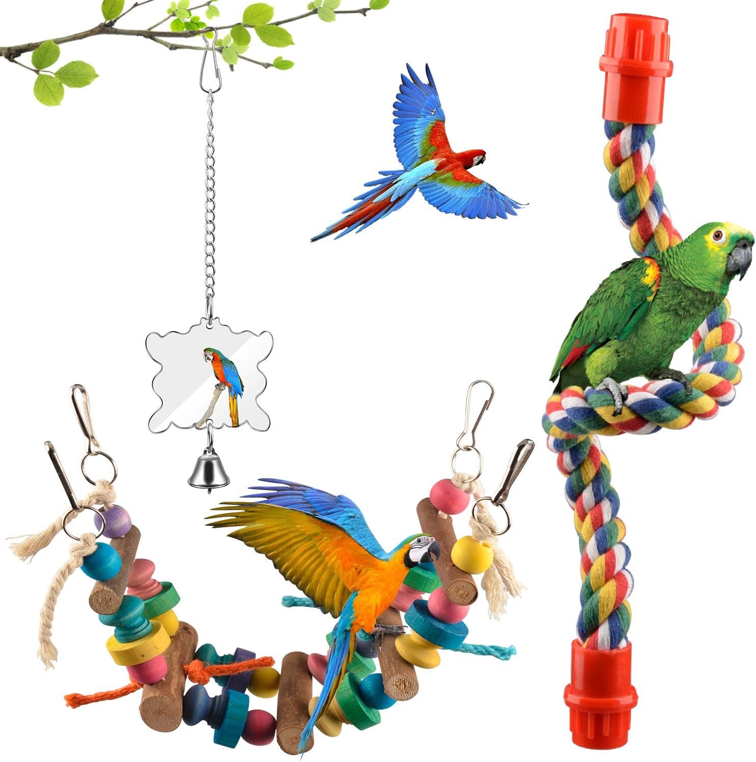 Bird swing toys 6pcs parrot swing chewing toys hanging perches with bells pet bird swing chewing toys for parakeets cockatiels conures macaws parrots love birds finches 41 out of 5 stars 24. 50 out of 5 stars 1.