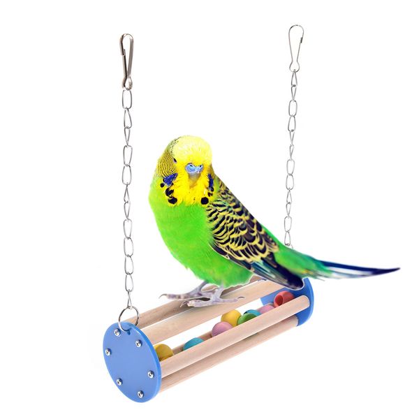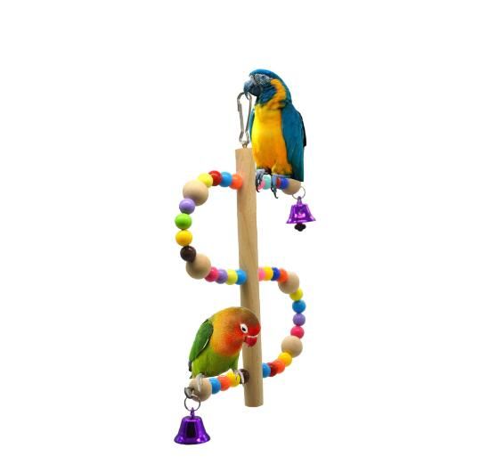 T Pet Bird Parrot Swing Wood Colorful Beads Parakeet Budgie