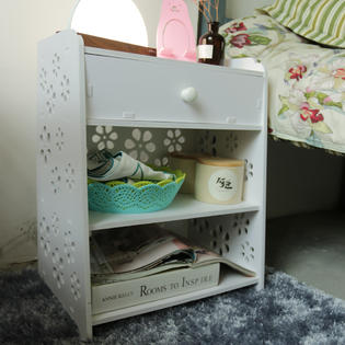 Modern White Flower Bedroom Bedside Table Rack Cabinet Organizer