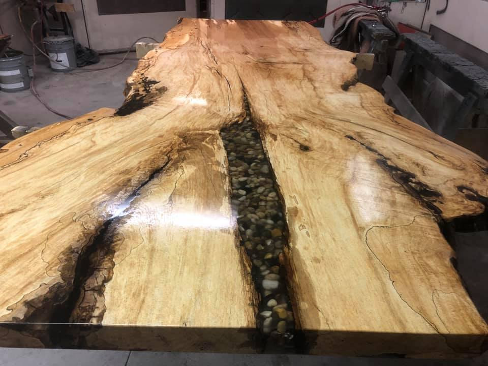12 Spalted Maple Harvest Table With River Rock Inlay